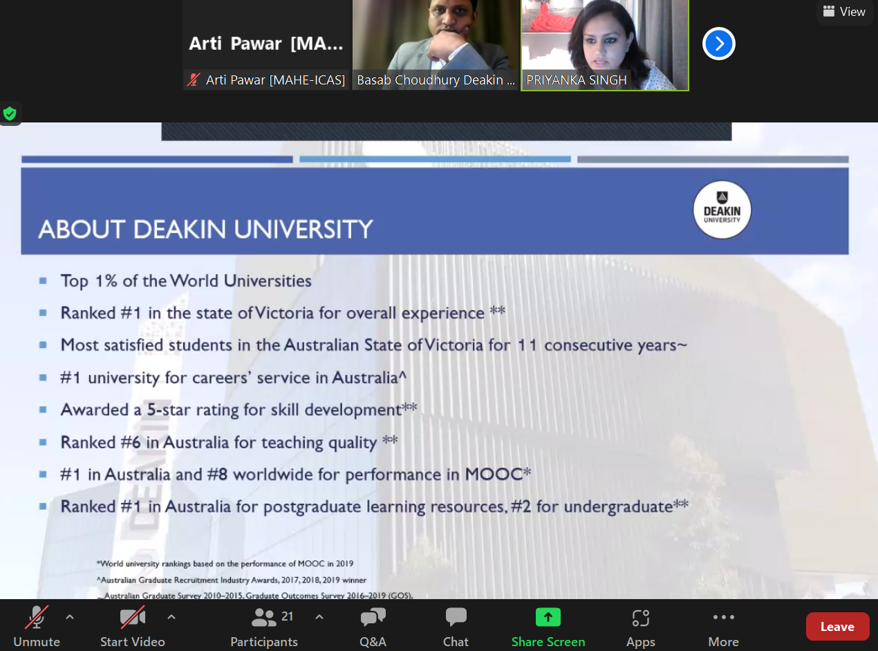 Online Interaction by Ms. Priyanka Singh, Deakin University, Australia – 6 April 2022