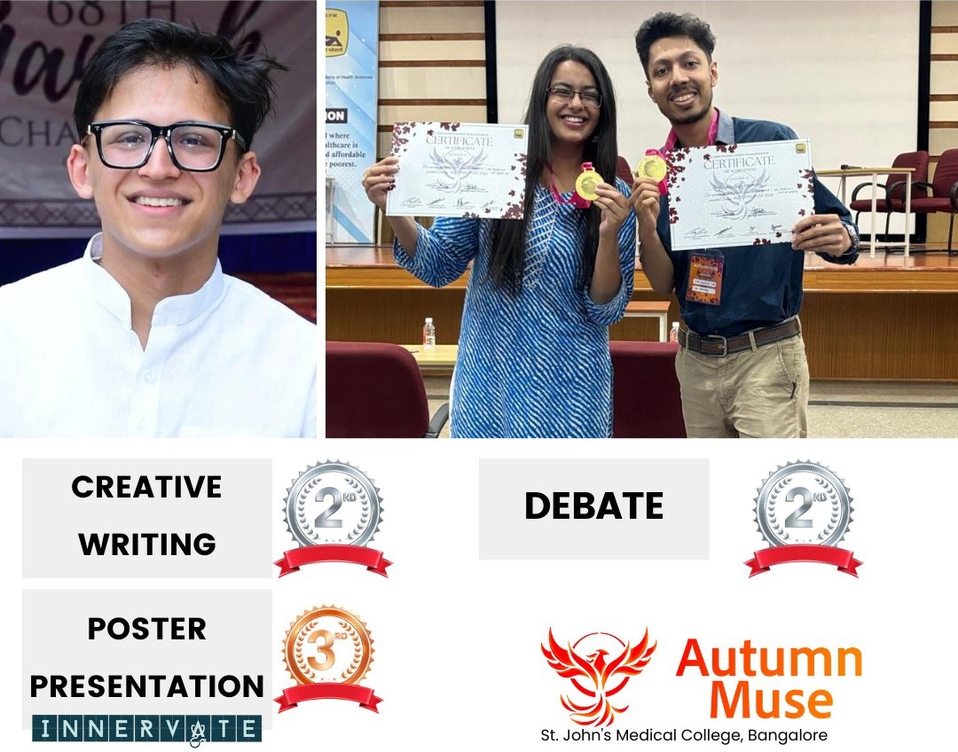 Congratulations to our talented students for their achievements at the Autumn Muse event organized by St. John's College, Bangalore!