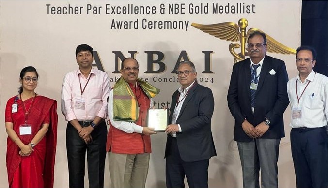 Congratulations to Dr. B. V. Tantry, Professor and Head of Gastroenterology at KMC Mangalore, on being honored as a "Teacher par Excellence" by the Association of National Board Accredited Institutions at Bangalore Baptist Hospital.