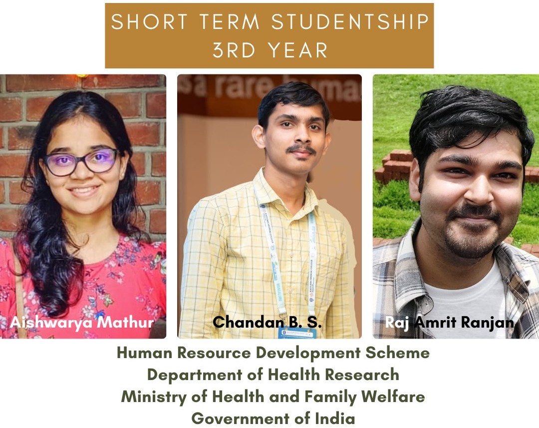 Congratulations to Aishwarya Mathur, Chandan B.S., and Raj Amrit Ranjan from the MBBS Batch 2021 at KMC Mangalore for being selected for the Short Term Studentship (STS) 2024-25 under the Department of Health Research, Government of India!