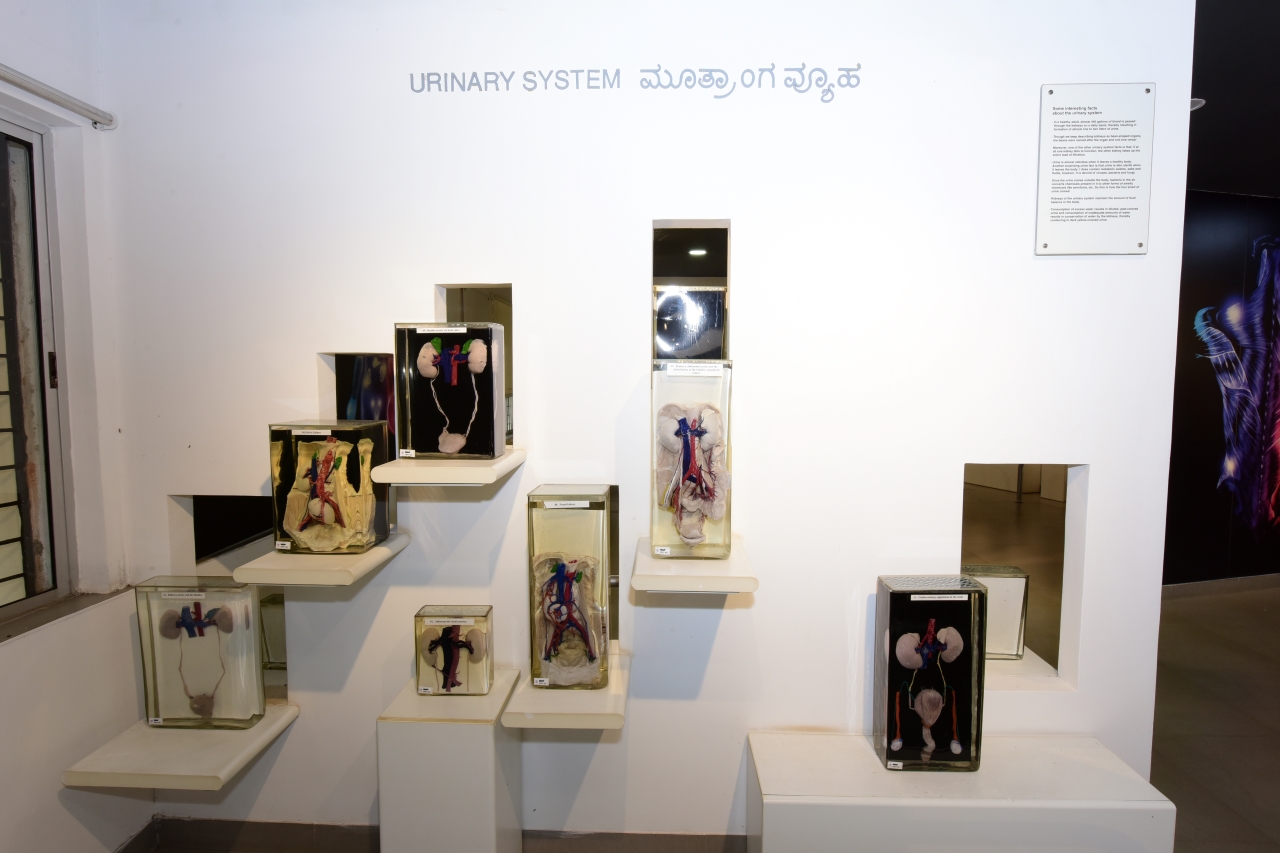 The museum is divided into two main sections: Anatomy and Pathology. The anatomy section displays specimens of normal human body parts and organs in a manner that makes them easy to understand. Each organ system of the human body can be explored as a separate entity. Every bit of the body is displayed from head to toe from different sections. There is a section on comparative anatomy, where a large collection of animals, their skeleton, and bones are displayed. The museum of Pathology displays diseased body parts and organs. The section on life-style related diseases displays specimens of diseases that occur in humans.