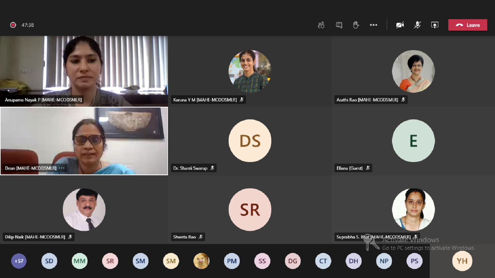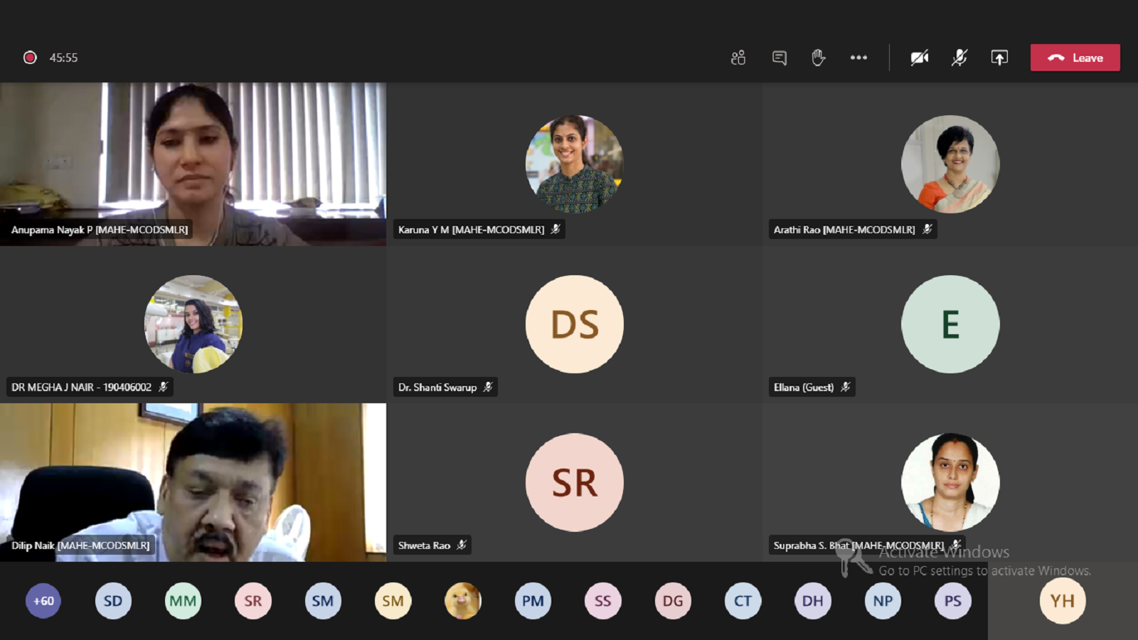 On the occasion of Children’s Day which is also celebrated as Pedodontist’s Day in India, as a part of community engagements for building stronger communities, a patient education booklet titled “ Taking Care of Your Child’s Teeth” was released by Dr. Dilip G Naik, Pro Vice Chancellor, MAHE (Mangalore Campus). Dr. Ashita Uppoor, Dean, MCODS, Mangalore and Dr. Premalatha Rai, Associate Dean, graced the occasion. A Panel Discussion on career options after post-graduation in Pediatric Dentistry titled, “Post-Graduation in Pediatric Dentistry: When, Why, How”, was moderated by Dr. Ashwin Rao, Associate Professor, Department of Pediatric and Preventive Dentistry. Dr. Shanti Swarup, Dr. Vidya Chandran, and Dr. Shweta Rao, Post graduate Alumni of the Department of Pediatric and Preventive Dentistry, enlightened the under graduate students regarding scope of Pediatric Dentistry. The program was well appreciated and attended by 108 participants.