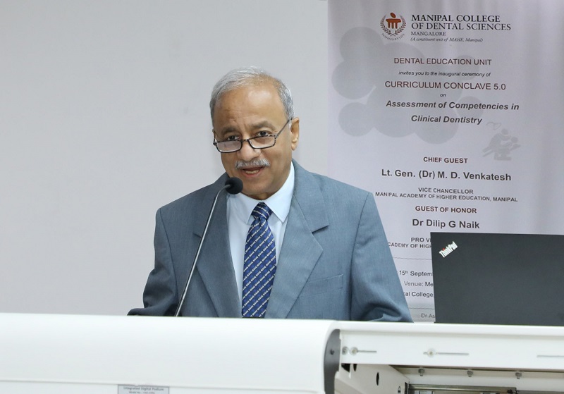 Dr. Dilip G Naik, Pro Vice Chancellor of MAHE, reiterated the role of MAHE in the conceptualization and implementation of Outcome Based Education by Choice for the dental colleges making us the pioneers. He pointed out the need of a dynamic and robust curriculum process with feedback mechanisms for bringing out graduates of the highest order in our profession.
