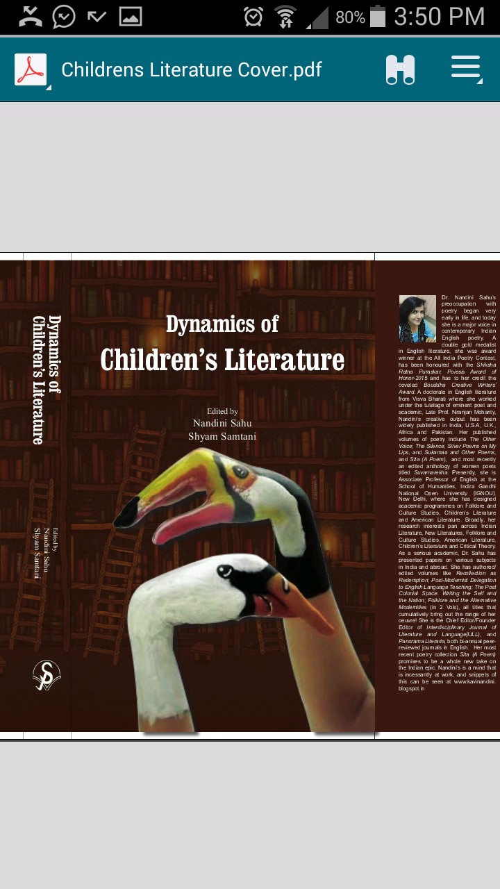 As another artwork, body art- "Free Bird" has also been selected as the cover picture for the book "Dynamics of Children's Literature" by Dr. Nandini Sahu, IGNOU. The author has given her due credits at the back of the book.