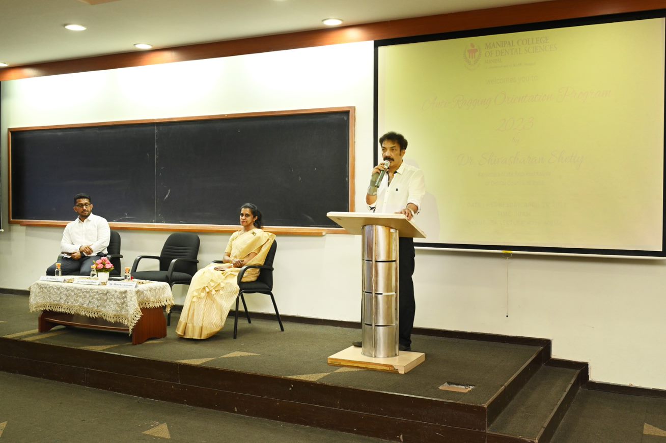 Manipal College of Dental Sciences, Manipal conducted the Anti- Ragging Orientation Program/ Workshop for the year 2023 on April 26 2023. The resource person for this workshop was Dr Shivasharan Shetty, Karnataka state representative of the Dental Council of India. Dr Monica Charlotte Solomon, Dean, Manipal College of Dental Sciences, Manipal welcomed the gathering. Dr Pradeep Sherigar, Head, Department of Prosthodontics and member of the Anti-Ragging committee introduced the resource person. Dr Shetty addressed the first year BDS students, class representatives of all the other batches, members of the anti-ragging committee and the anti- ragging squad of the institution. Dr Spoorti Kulkarni was the master of ceremony.