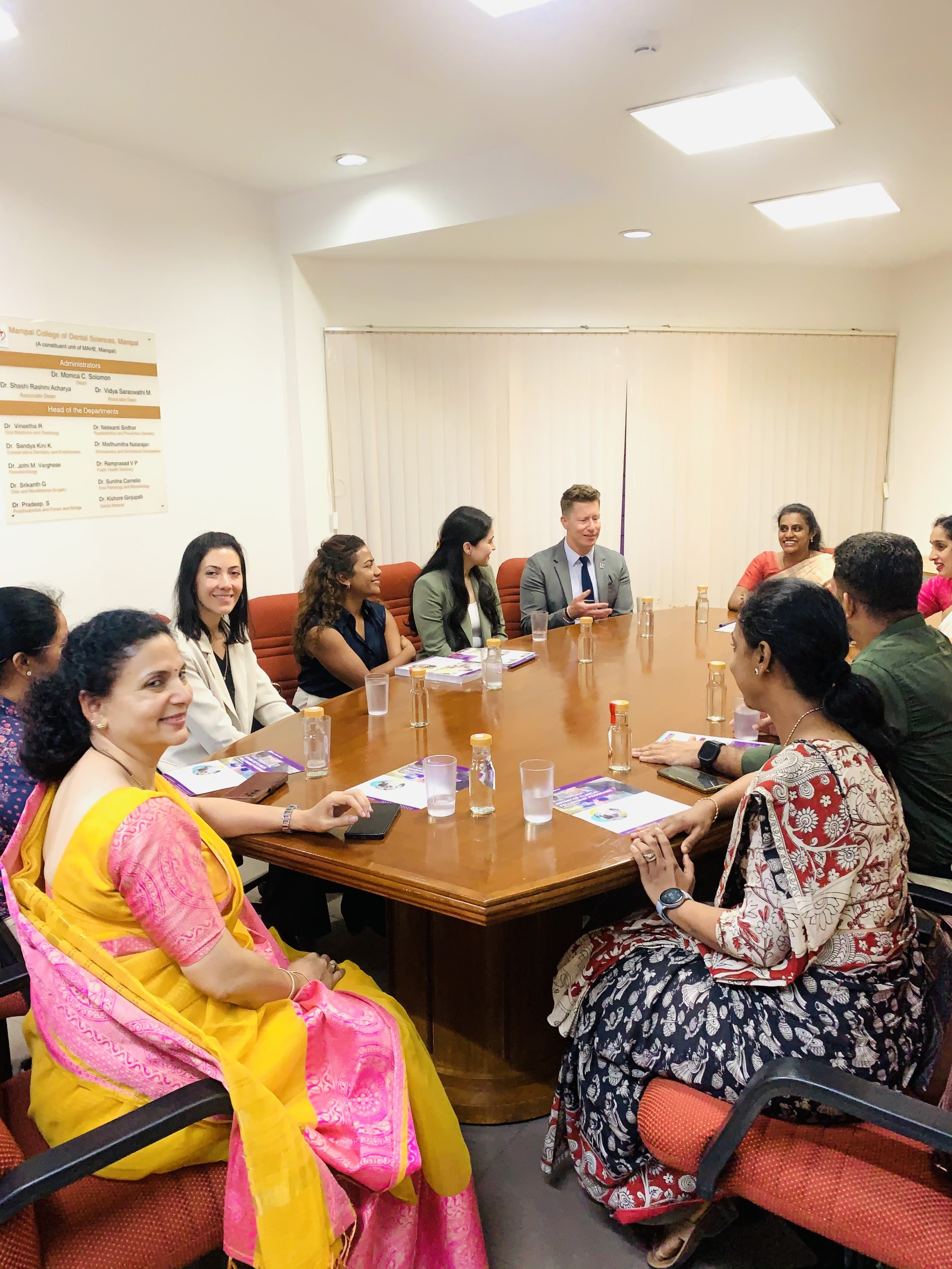 Dr Anabella Oquendo, Dr Eram Nasir, Dr Edward Rosenbaum and Ms Mercy Rani Swarna from New York University- Dentistry visited Manipal College of Dental Sciences, Manipal on March 21 , 2024. Dr Anabella Oquendo, Assistant Dean for International programs and clinical assistant professor delivered a lecture on "NYU dentistry interdisciplinary journey- You are never fully dressed without a smile" to the interns, post graduate students and faculty of Manipal College of Dental Sciences, Manipal. Dr Edward Rosenbaum enlightened the students on the various Advanced Clinical fellowship that were carried out at New York University – Dentistry. The faculty also discussed opportunities of student exchange programs and research collaborations