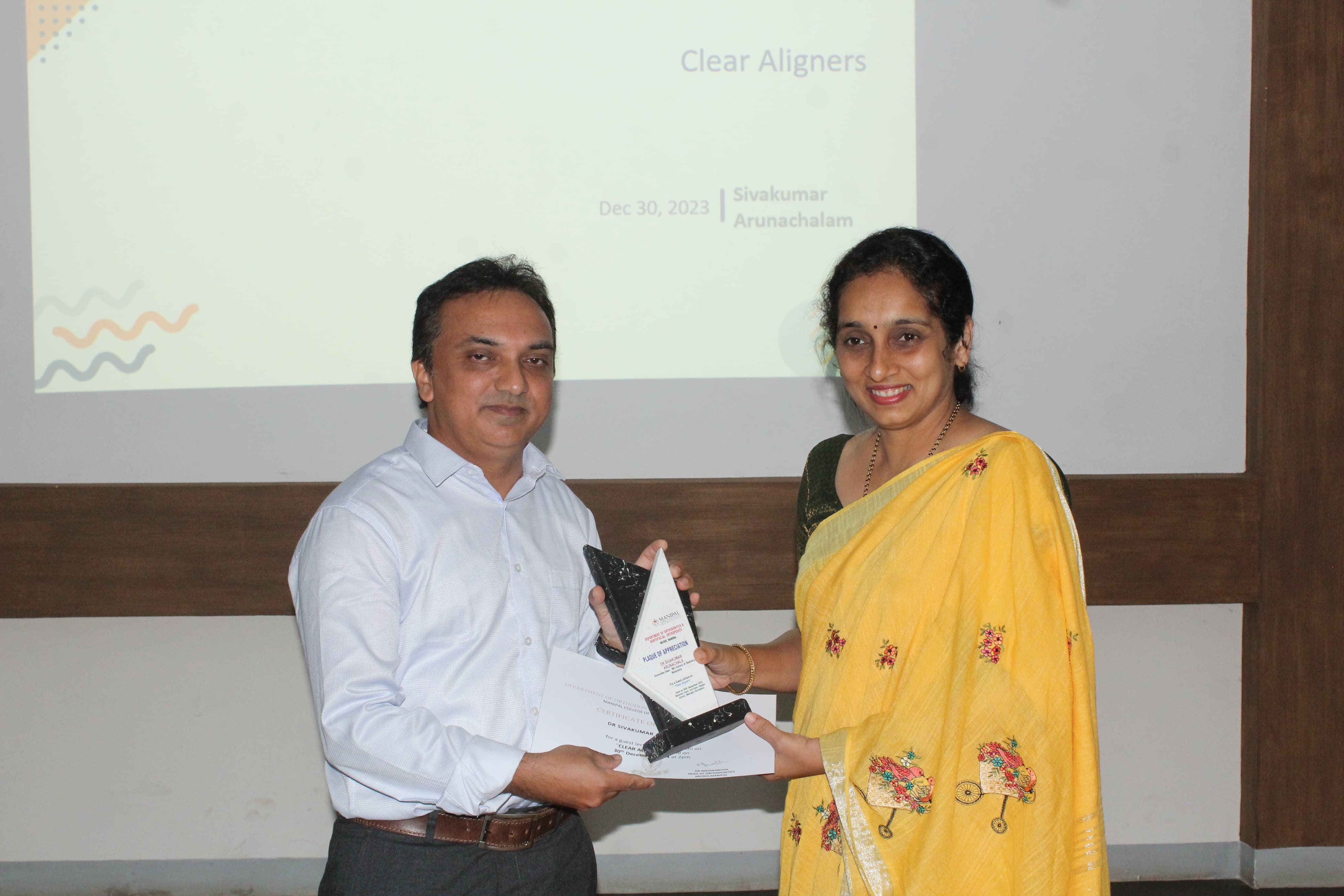 The Department of Orthodontics organized an Orthodontic PG alumni lecture on Clear Aligners on the 30th of December 2023. The resource person for the program was Dr.Sivakumar A, an alumni from the 2004 batch of postgraduates of the department. He is currently serving as the Associate Dean (Quality), and Associate Professor at the School of Dentistry, International Medical University, Kuala Lumpur, Malaysia.