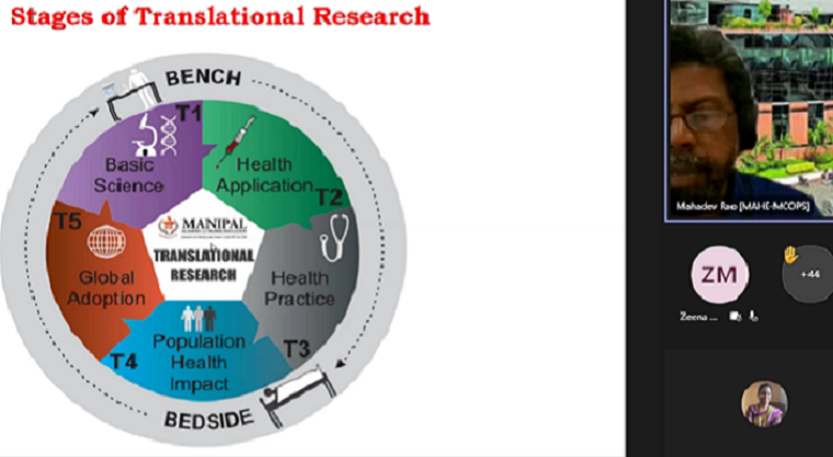 The lecture series 3 on “Models of Translational Research” was delivered by Dr Mahadev Rao, Professor & Head, Department of Pharmacy Practice, Co-ordinator, Center for Translational Research, Manipal College of Pharmaceutical Sciences, MAHE, Manipal, India held on 3rd March 2022 between 4.00 to 5.00 pm (IST). He enlightened the participants that the transitional research model is intended to provide a benchmark to assess the impact of research that applies scientific findings to enhance public health and well-being.