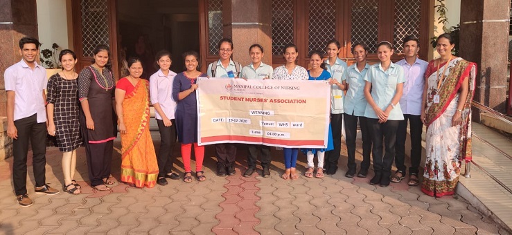 The health education committee of SNA 2019-20, Manipal College of Nursing, MAHE, Manipal organized an awareness program on weaning on 29th February 2020 between 4.15 pm to 5 pm at WH-5 ward, Kasturba Hospital, Manipal.