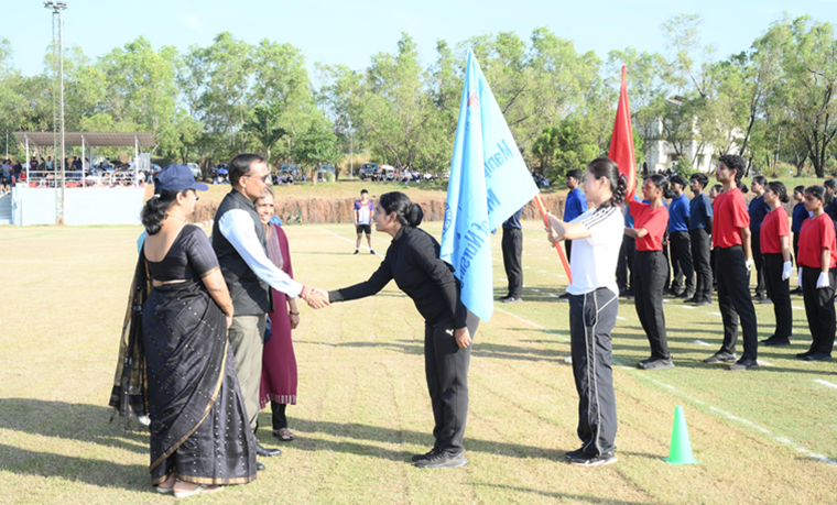 Ms Jemimah James David, who proudly carried the college flag. A torch-bearing ceremony was conducted by five outstanding sportspersons of the college: Mr Sonam Gurmey, Ms Alisha D’Souza, Mr Gautham Prakash, Mr Renon D’Souza, and Mr Abhay.