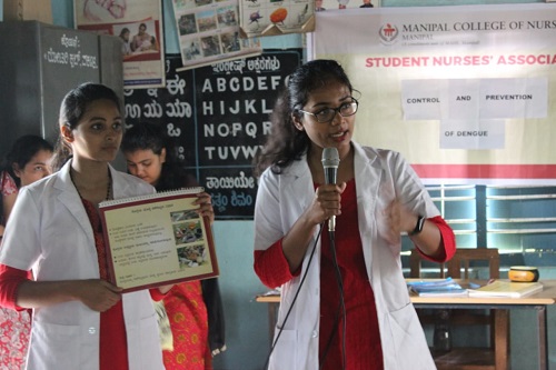 A role play and dance was performed by the committee members on prevention and control of Dengue fever which was followed by health education on management of dengue fever by Ms. Benita Dcunha, 4th year BSc Nursing and Committee Chairperson and Ms. Viola Mathias, 3rd Year BSc Nursing Student.