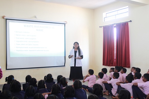 Ms. Melvita Beconiya Andrade and Ms. Amala Tressa Martin, students of 3rd year BSc Nursing, conducted the session and discussed on types of waste, sources of waste production, consequences of improper waste management, segregation and disposal of waste. They emphasized reducing waste, reusing and recycling waste.