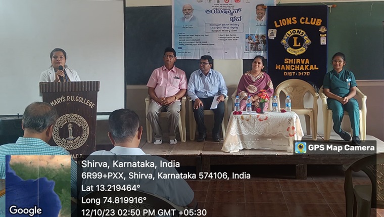 The program was started with an invocation by Ms. Nelifer Shreya and Ms.Glanish Aranha, which was followed by a welcome address by Ms.Glanish Aranha, 2nd year PBBSc Nursing student. The program was inaugurated Ln. Mr.Felix D’Souza, President, Lions Club, Shirva, Mrs. Sabeena Priya Noronha, Principal, St.Mary’s High school, Shirva, Ms. Nisha, Community Health Officer, Shirva, Dr Shashidhara YN Head Department of Community Health Nursing MCON and, Ms.Tejaswi the student representative by lighting the lamp