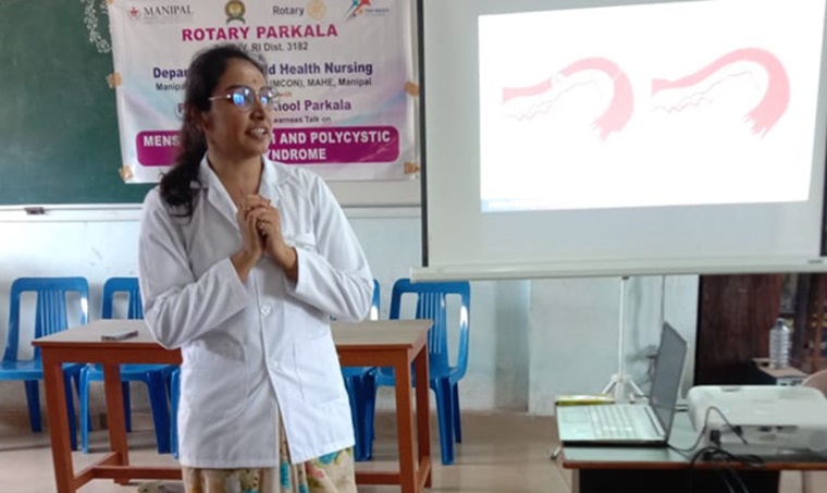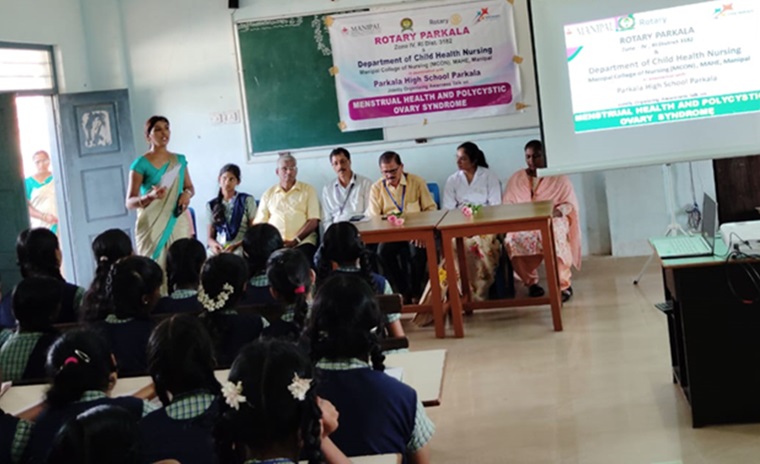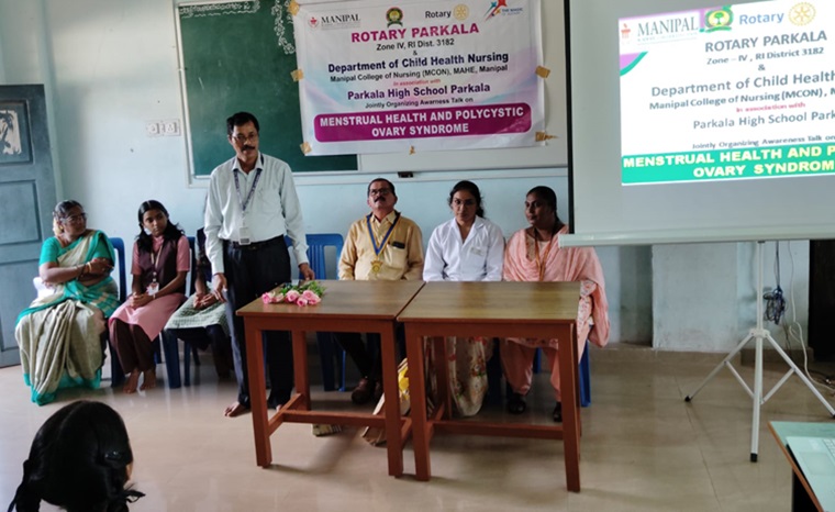 The Department of Child Health (Paediatric) Nursing, Manipal College of Nursing (MCON), Manipal Academy of Higher Education (MAHE), Manipal, in collaboration with Rotary Club, Parkala, hosted an awareness talk on “Menstrual Health and Polycystic Ovary Syndrome (PCOS) at Parkala High School, Parkala, Udupi District, Karnataka, on 1st October 2024, between 2.00 p.m. and 4:00 p.m in recognition of PCOS awareness month. The session aimed at raising awareness among high school students and faculty members on the significance of maintaining menstrual health for promoting health and preventing illness in the future.