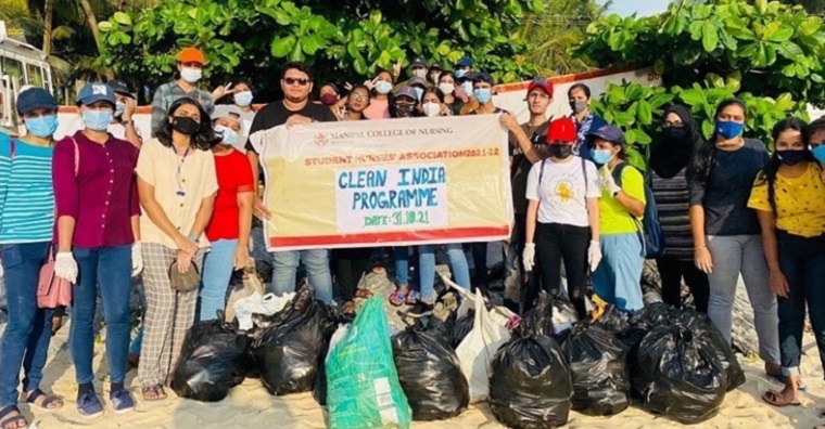 As part of the “clean India” program, the health and social welfare committee of Student Nurses' Association, Manipal College of Nursing, Manipal Academy of Higher Education, Manipal, organized a beach cleaning drive at Malpe beach on 31st October 2021 from 3.30 pm to 5.30 pm.
