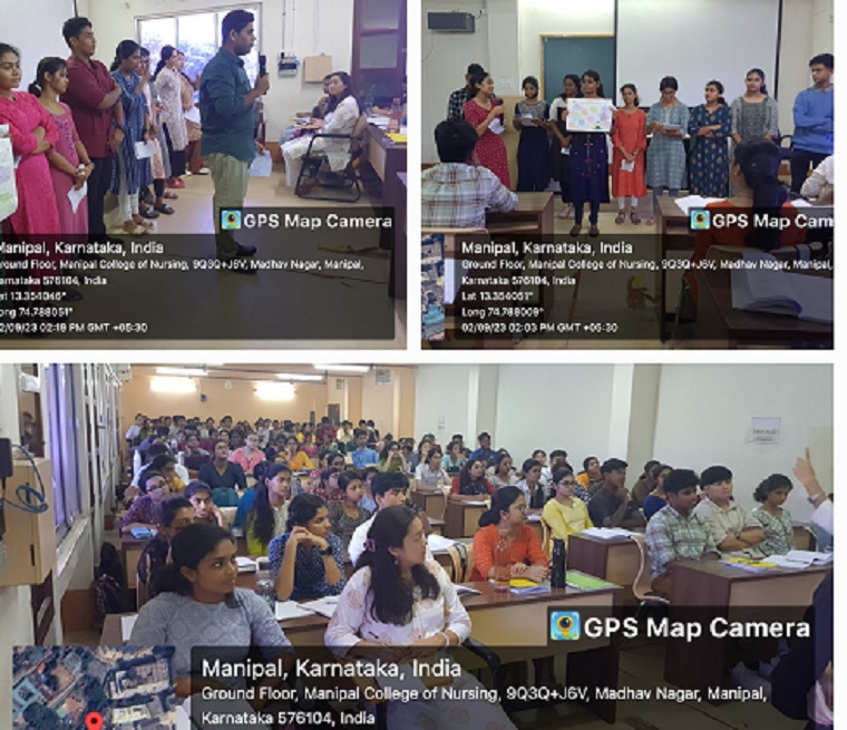 In the first semester of the Bachelor of Science in Nursing program, students were organized into teams with the task of creating and delivering a poster presentation on the topics of “Factors Influencing Communication and Barriers to Communication” on 8th September 2023 from 10.30 am to 12.30 pm. The students demonstrated enthusiastic engagement in the poster preparation process, showcasing their creativity and design abilities. During the presentations, each group ensured the active involvement of every student to promote equal participation among all members. The interactive poster session is in line with Sustainable Development Goal 4- Quality Education.