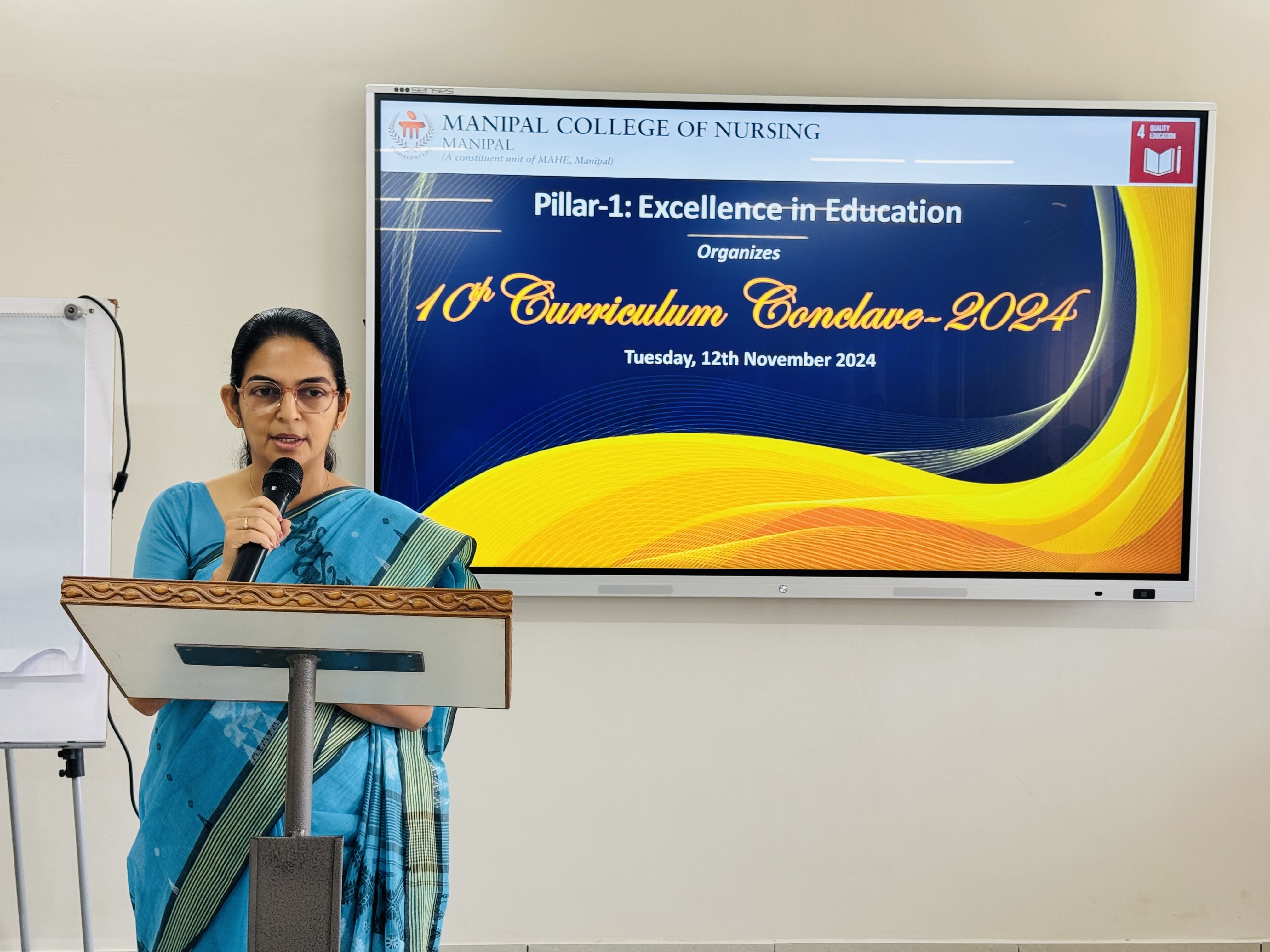 Dr. Linu Sara George, Professor and Head, Department of Fundamentals of Nursing, and Pillar 1 Head, Excellence in Education, MCON, welcomed the gathering. An overview of the curriculum conclave and introduction to the resource person was provided by Mrs. Janet Alva, Assistant Professor, Department of Medical-Surgical Nursing, MCON and Convenor of the conclave. Dr. Savitha Prabhu, Assistant Professor-Senior Scale, Department of Psychiatric (Mental Health) Nursing, and Co-convenor of the conclave, proposed a vote of thanks.