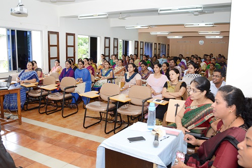 The first session was conducted by Dr. P V Bhandary, Director Dr. A.V. Baliga Hospital on “Enhancing values & culture in young generation”. Dr. Bhandary took an informative session and highlighted on importance of cultivating values among the younger generation which is the prime duty of teachers. Five D’s all must try to achieve are Dream/ Desire, Discipline, Determination, Dedication and Divine Intervention.