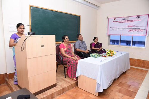 Mrs. Shalini G Nayak, Lecturer, Department of Medical Surgical Nursing gave a lecture on  Qualitative data analysis using Open Code software followed by a session on Meta-synthesis by Mr. Vishnu Renjith, Research Scholar MCON Manipal. Each department presented research analysis of the last academic year and proposal for the next academic year. A total 75 faculty attended the FDP 2016.