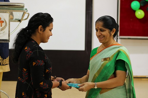 Ms. Vineeta, 2nd year BSc Nursing student welcomed the august gathering. The SNA 19-20 Slogan was announced by the SNA president Ms. Vinslet Alisha and the winner of slogan competition, Ms. Anagha Maria was rewarded.