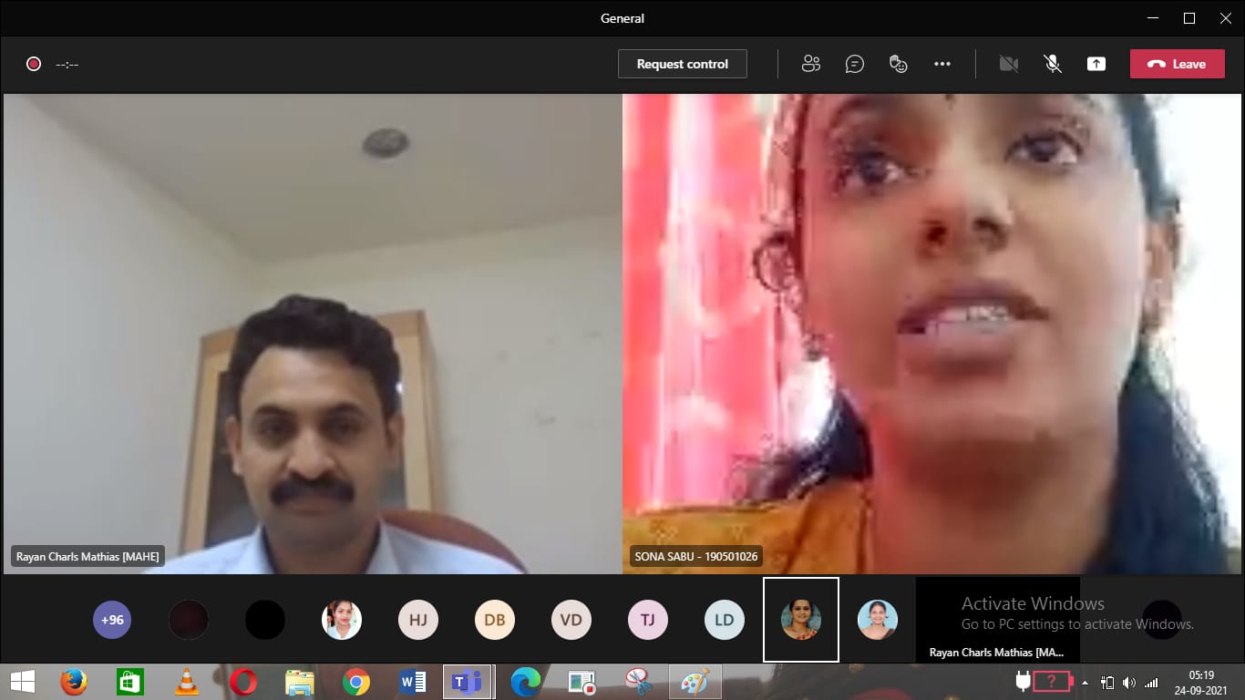As part of 75 years of India's independence - Bharath ka Amrut Mahotsav the health and social welfare committee of Student Nurses' Association, Manipal College of Nursing, MAHE, Manipal organized a virtual session on the topic, “Effective Ways to Accept Tough Situations in Life” for undergraduate students of Manipal College of Nursing Manipal, through MS Teams platform on September 24, 2021, from 4:30 pm – 5:30 pm.