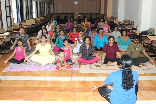 Session on various topics related to Yoga was conducted on 20th June 2015 from 2:00 pm to 4:00 pm. Dr.Annapoorna Acharya, Selection Grade Lecturer, Yoga Department, KMC, Manipal gave a holistic view of Yoga. She said Yoga is not just an exercise; it is a practice which needs to be continued with balanced mind and body. She said it is important to follow a good diet and lifestyle practices along with yoga.