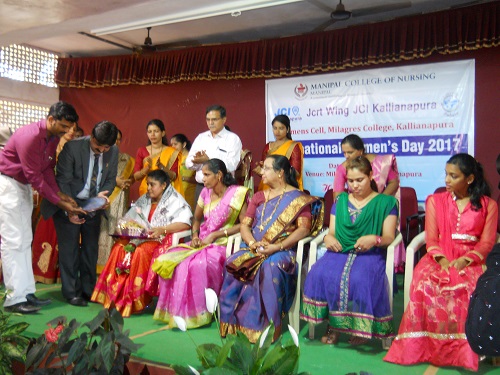 The Department of Obstetrics and Gynecological Nursing, Manipal College of Nursing Manipal along with Jcrt Wing JCI Kallianapura and Women’s Cell, Milagres College, Kallianapura celebrated the International Women’s Day 2107 on 8 March 2017. The programme was inaugurated by the dignitaries by lighting the traditional lamp. Jcrt Devika Prashanth, the chairperson of Jcrt Wing welcomed the gathering.