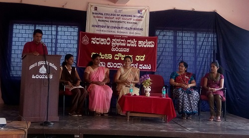 The faculty and postgraduate students of Department of Obstetrics and Gynecological Nursing, Manipal College of Nursing Manipal Academy of Higher Education, Manipal and G. Shankar Government Women’s First Grade college and post-graduation study Centre and Committee for Prevention of Atrocity against Women, Ajjarkad, Udupi observed International Women’s Day - 2016 at Lion’s Bhavan, Brahmagiri on 8th March 2016 on the theme “Pledge for parity”. Around 100 women students and faculty attended the program.