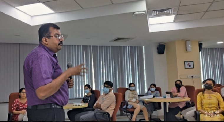 Dr Prakash Peralam Yegneswaran, Associate Professor, Department of Microbiology drove the students towards the role of microorganisms and their impact on wound healing and recovery. He ignited the importance of patients’ clinical environment and also correct practice in terms of sample collection, diagnosis and management of medication which needs authenticity. He took the group by storm to see that microbial biodiversity was to be considered during teaching and practice and active group discussion and mapping organisms were initiated using a whiteboard. Students felt the need for relearning the emphasis laid.
