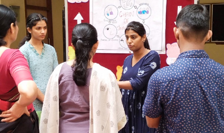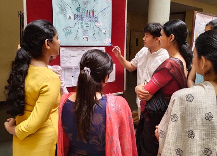 The Department of Fundamentals of Nursing organized a project-based teaching-learning activity for the first semester BSc Nursing students on 26 September 2023 at the Interact lobby, MAHE. The project was on “Infection Control and Safety Measures in the Hospital.” This activity involved the students presenting to their peers with the help of posters and demonstrations. The students were divided into 28 groups with 4 to 5 members in each group. The faculty advisor assigned topics to the students, and they were asked to prepare the posters and demonstration materials for the presentation. The students researched the topic, took assistance from their faculty advisor, and arranged for the activity. The students were also evaluated and awarded the best three posters. The students enjoyed the process and gave positive feedback on their involvement in the activity, which will be beneficial for retaining the content and understanding it better. The activity was held from 9.00 AM to 1.00 PM. The students visited each team and learned from their peers. The department faculty went to each team and asked them questions about the topic to challenge them and inculcate critical thinking in applying this knowledge in patient care. The activity is in line with the Sustainable Development Goal (SDG) 4 - Quality Education.