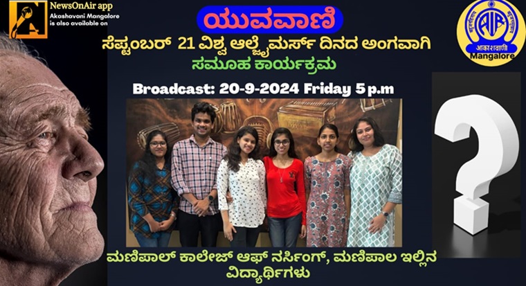 A radio program by Dr. Savitha Prabhu on raising awareness among the public and support for those dealing with Alzheimer’s disease and other dementias was recorded on 18th September in Mangalore Akashavani and will be aired on 20th September at 8.30 pm and a role play by the students of the 5th semester on Alzheimer’s Dementia will be aired on 20th September at 5 pm on NewsOnAir, Akashavani, Mangalore. The program is aligned with SDG 3 good health and wellbeing and SDG 4 quality education.