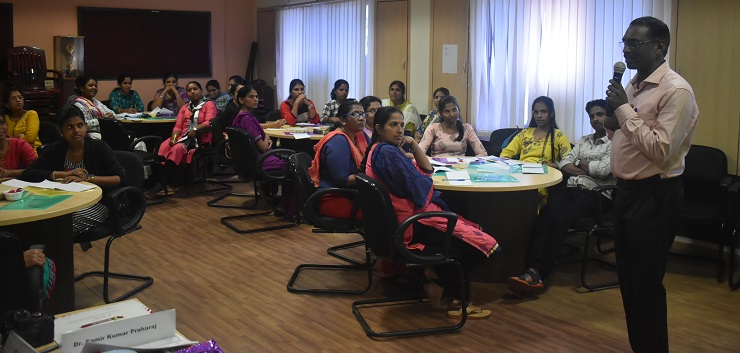 Following the inaugural function, a session on organizational communication for nurses was taken by Dr. Samir Kumar Prahraj, Professor & Head, Dept. of Psychiatry, KH & KMC Manipal.