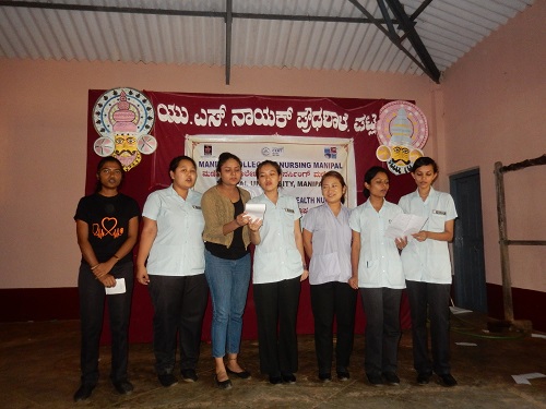 Dept. of Community Health Nursing, Manipal College of Nursing Manipal, observed National Youth Day 2017 at U S Nayak High School, Patla on 13th January 2017. The programme commenced with prayer song followed by welcome speech by Ms. Neola Jennifer, 4th year BSc Nursing student. Chief guest of the programme was Mr. Annaya Nayak, Secretary, Rural Education Society, Udupi. He stressed the importance of following the words of Vivekananda to inculcate the moral values among young generation.