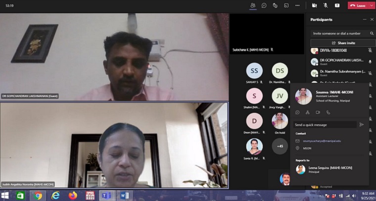The Exemplary Research and innovation team (IoE, Pillar – II) of Manipal College of Nursing, MAHE, Manipal, has organized Nursing Research Day on 25th September 2021 through virtual mode. The goal was to provide an additional forum for faculty and students an opportunity to present their research and igniting their own research and innovative ambitions. A total of 150 participants attended the program and 20 participants presented e-posters and innovative ideas through the Microsoft team.