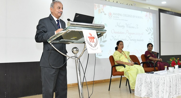 The Freshers’ Orientation program of the 33rd Batch of BSc Nursing, 29th Batch of PBBSc Nursing, and 7th Batch of NPCC Nursing was organized by Manipal College of Nursing, MAHE, Manipal on 1st August 2023 at the Dr. TMA Pai Hall II, KMC, Manipal. The Chief Guest of the program, Lt. Gen. (Dr.) M. D. Venkatesh, Vice Chancellor, Manipal Academy of Higher Education (MAHE), Manipal addressed the newly joined students and their parents. He gave a brief orientation about MAHE including ample opportunities available for various curricular and extracurricular activities. In his talk, he highlighted that nursing is a unique profession that is dedicated to the healing and welfare of patients. He further suggested incorporating three ingredients such as cognitive, psychomotor, and affective for effective learning. Dr. Judith A Noronha, Dean, MCON Manipal gave a brief introduction to the institution and introduced the faculty members. Orientation to the Nursing Services was given by Dr. P. Suba Sooria, Head-Nursing Services, Kasturba Hospital, Manipal. Orientation to student support services offered by MAHE was explained by Dr. Arvind Pandey, Deputy Director, Student Affairs (Health Sciences), MAHE, Manipal.