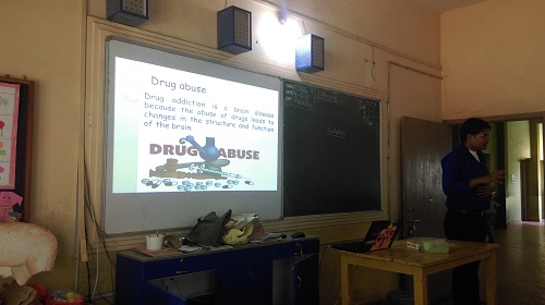 Kaushik explained the students about Substance abuse and its ill effects. The students actively took part in the discussion.