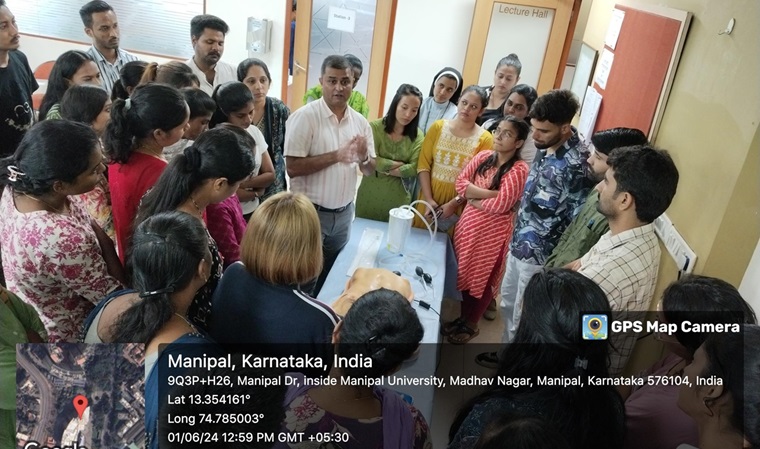 The Department of Medical-Surgical Nursing, Manipal College of Nursing (MCON), Manipal Academy of Higher Education (MAHE), in collaboration with the Indian Society of Critical Care Medicine, Manipal branch, organized a two-day “Advanced Skill Lab Critical Care Competency Workshop” for faculty and PG Nursing students (NPCC & MSc) on May 31 & June 1, 2024, at the Medical Simulation Centre, 6th floor Search Library, MAHE Manipal. The workshop began with a formal inaugural program at 9:00 on May 31st, and Dr Sharath Kumar Rao K, Pro Vice Chancellor-Health Sciences MAHE, Manipal, was the chief guest. He delivered an inspiring speech highlighting the role of interdisciplinary collaboration in advancing health sciences, emphasizing the importance of such workshops and the need for upskilling competencies. Dr Jyothi Chakrabarty, Professor & Head, Department of Medical Surgical Nursing, MCON Manipal, welcomed the gathering. Dr Judith A Noronha, Dean, MCON Manipal, also delivered a compelling speech on the vital role of nursing in healthcare, emphasizing the need for ongoing education and compassionate patient care to meet the evolving challenges in the field. Dr Vishal Shanbhag, Associate Professor, Department of Critical Care Medicine, KMC Manipal, provided an overview of the workshop.