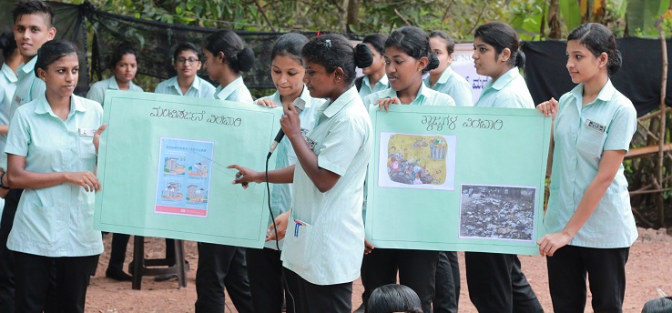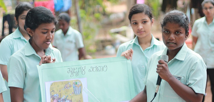 The program started at 10:30 am with an invocation by Ms.Pruthvi D Bore which was followed by a welcome address by Ms. Kirana& a skit by Jesna James and a team of 15 students. The Skit highlighted the methods of waste and excreta disposal. The program was continued with a speech by Ms.Pruthvi D Bore, which focused on "Swacha Bharat Shresht Bharat." The next section of the program was an action dance led by Ms. Sandra Jacob and a team of 16 students, which focused on various techniques of handwashing.