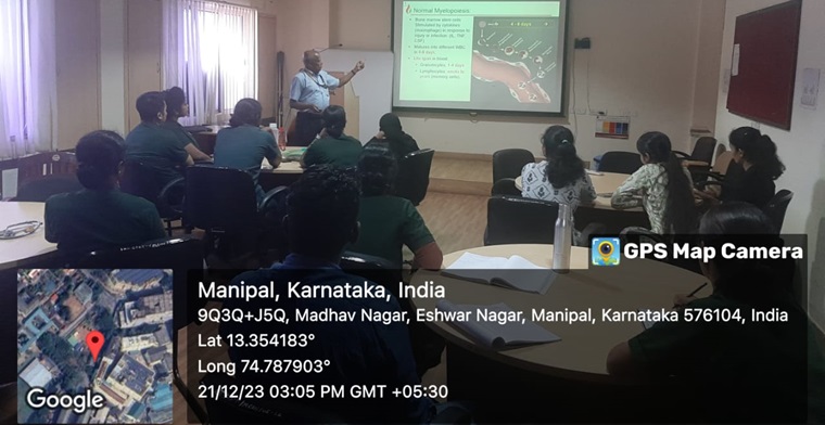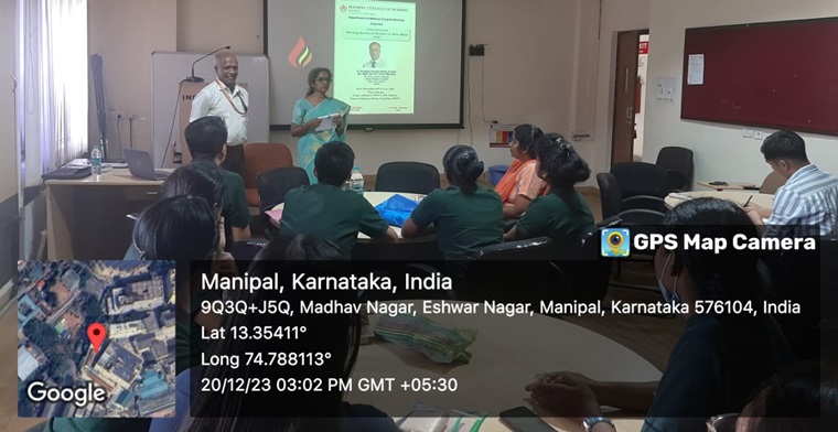 We hosted a guest lecture on "Coagulation Disorders and Disorders of White Blood Cells” on December 20th and 21st, 2023, between 3:00 pm and 4:30 pm. The target audience were students of nurse practitioners in critical care postgraduate residency programme and MSc nursing students. Dr. Shashidhar Venkatesh Murthy, JP (Qual), BSc, MBBS, MD, GCTT, IFCAP, MBA (Edu), A/Professor & Head of Pathology, College of Medicine & Dentistry, James Cook University, Australia, highlighted various disorders under the topic that have significance to critical care. A total of 25 participants attended the session. The session was coordinated by Dr. Jyothi Chakrabarty, Professor and HoD, Department of Medical Surgical Nursing.