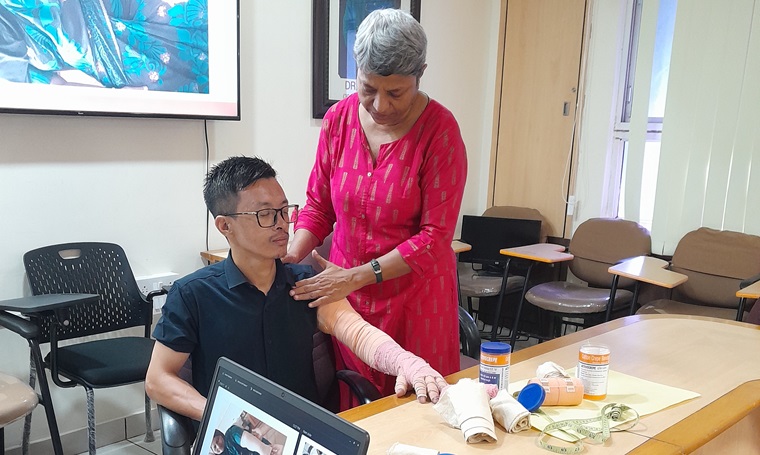 We hosted a guest lecture on “Lymphedema Management” on September 27th from 11:30 am to 1:00 pm. The target audience included students from the Nurse Practitioner in Critical Care Postgraduate Residency Programme and MSc Nursing students. Mrs. Alice Stella Virginia, RNRM, BCCPN, NFPN, ELNEC Master Facilitator, and Retired Army Nursing Officer, highlighted the definition, assessment, exercises for lymphedema, and lymphedema dressing, emphasizing its significance in palliative care and home care. A total of 39 participants attended the session (6 boys and 33 girls). The session was coordinated by Dr. Jyothi Chakrabarty, Professor & HoD, Department of Medical Surgical Nursing.
