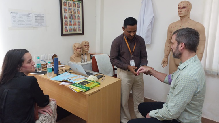 They also interacted with Dr Naveen Salins and Dr Krithika, faculty members, Palliative Medicine and Supportive Care, KH Manipal, and discussed palliative and end-of-life care. A discussion with the faculty members of Community Medicine, KMC Manipal was held, where there was a sharing of the research done among the indigenous population in Canada and the research conducted among the indigenous population in India. The healthcare system in India and Canada was also discussed, and they shared about the challenges in conducting research among the indigenous population. They also visited the Yoga, Ayurveda and Siddha medicine departments. Dr. Neetinakumar J Patil, Associate Professor, Centre for Integrative Medicine & Research (CIMR) Division of Yoga, Dr. Aneesh E G, Assistant Professor, Division of Ayurveda, Centre for Integrative Medicine and Research, and Dr. Arul Amutham, Professor, Department of Siddha Medicine, oriented them about department courses, activities, strengths of the institution, and various research activities. They also did a yoga practice session, a demonstration of the practice of Siddha medicine, and the preparation of ayurvedic medicine used for multiple treatments.