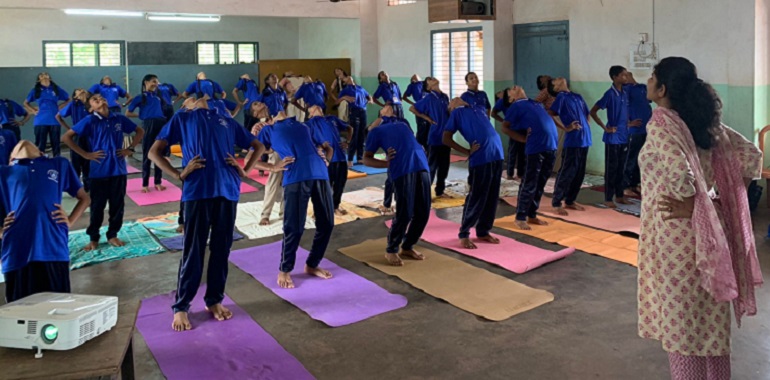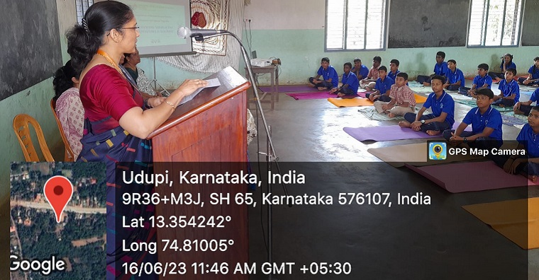 Across the world, International Yoga Day (IYD) is celebrated on June 21st every year. It coincides with the longest day of the year in the Northern Hemisphere and has special meaning in many parts of the world. The theme of IYD 2023 is “Yoga for Vasudhaiva Kutumbakam,” which beautifully captures our shared aspiration for “One Earth, One Family, and One Future.” The Department of Medical-Surgical Nursing, Manipal College of Nursing, MAHE, Manipal, observed IYD 2023 on June 16, 2023, at B M English Medium School Parkala from 11.00 am - 12.30 pm. The target audience was upper primary school students and the program emphasized the theme of meeting SDG three and sixteen i.e. good health and well-being and peace, justice, and strong institutions respectively.