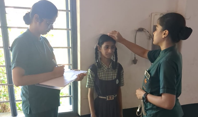 The program commenced with a welcome address by Ms. Viola Fernandes, final Year BSc Nursing student, and followed by that, screening of school children was done. Ms Anitta Thomas, a final year BSc nursing student demonstrated yoga to the children, and all actively participated in the event. The final year B Sc Nursing students deliberated the session on “Healthy Choices and Happy Life” by using different AV aids such as charts, videos, and role play and enlightened the young minds on a healthy diet, exercise, healthy habits, personal hygiene, and highlighted the importance of having healthy behaviour.