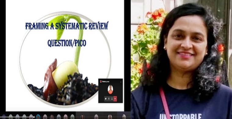 Mrs Anupama DS, PhD Research Scholar of MCON discussed PICO as the method of framing a systematic review question and the components of PICO questions with examples. She also emphasized on the advantages and limitations of framing a systematic review question. During the session, participants were actively engaged in framing a relevant question and PICO.