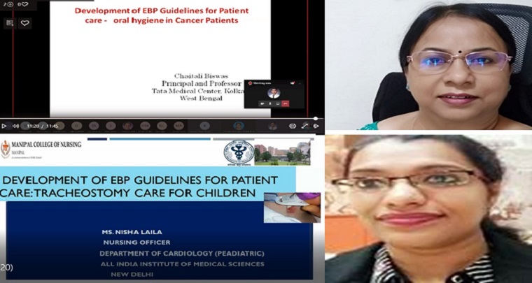 Mrs Chaitali Biswas, Professor and Principal, Tata Medical Centre, Kolkata, W. Bengal, discussed the development of EBP guidelines for oral hygiene in cancer patients.