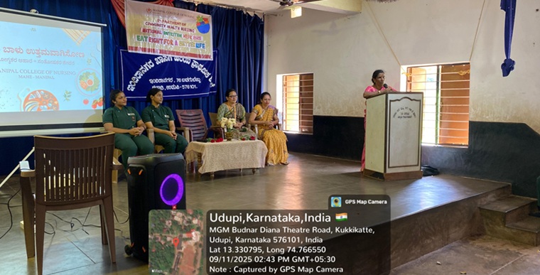 The fifth semester BSc Nursing students and the Department of Community Health Nursing in association with NSS unit of Manipal College of Nursing organized an awareness program as part of the “National Nutrition Week-2025” on the theme “Eat Right for A Better Life” on 11thSeptember 2025 between 2.00 to 3.30 pm at Aided Higher Primary School (AHPS), Indira Nagar, Kukkikatte, which was focusing on SDG-3 Good health &wellbeing.