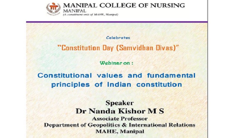 Manipal College of Nursing, MAHE, Manipal has celebrated the Constitution Day (Samvidhan Divas)” on November 26th, 2020 at the college.