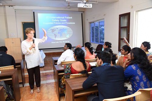 Dr Elissa Ladd explained the importance of following the standards and protocols and focused more on Joint Commission International guidelines which includes international Patient Safety Standard guidelines.  She has demonstrated this with lots of examples and videos on: Identify patients correctly, improve effective communication, improve the safety of high alert medications, ensure correct site, correct procedure, and correct patient surgery, and reduce the risk of health care associated infection and reduction of patient harm resulting from falls.