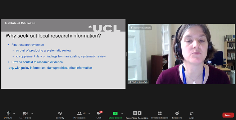 The next plenary session was on ‘Searching resources for local context’ was dealt by Dr Claire Stansfield, Senior Research Fellow IOE – SRI, UCL Institute of Education, London, UK. The session was moderated by Dr Judith A Noronha, Dean, MCON, MAHE, Manipal.