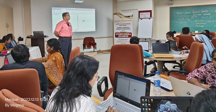 Pillar II: Exemplary Research and Innovation, Manipal College of Nursing (MCON) Manipal organized a workshop on ‘Systematic Reviews and Meta-Analysis’ from December 12th to 13th, 2023, at the Medical Education Department classroom, MAHE. Forty-eight participants attended the workshop, including faculty members and research scholars from different institutions in India. The workshop aligned with Sustainable Development Goal 4, Quality Education.